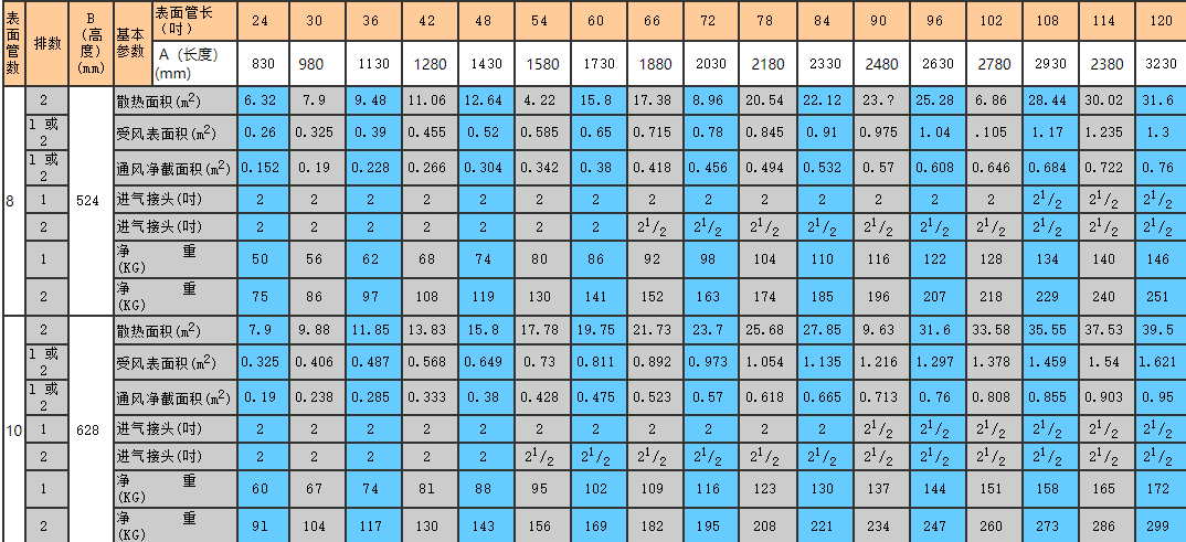 I型散热排管是我厂生产的老型号,它既适用于蒸汽加热系统又适用于高温水加热系统。I型散热排管有各种不同表面管长、管数、排数的各种配合,满足不同需求,计有大小规格一百七十种。