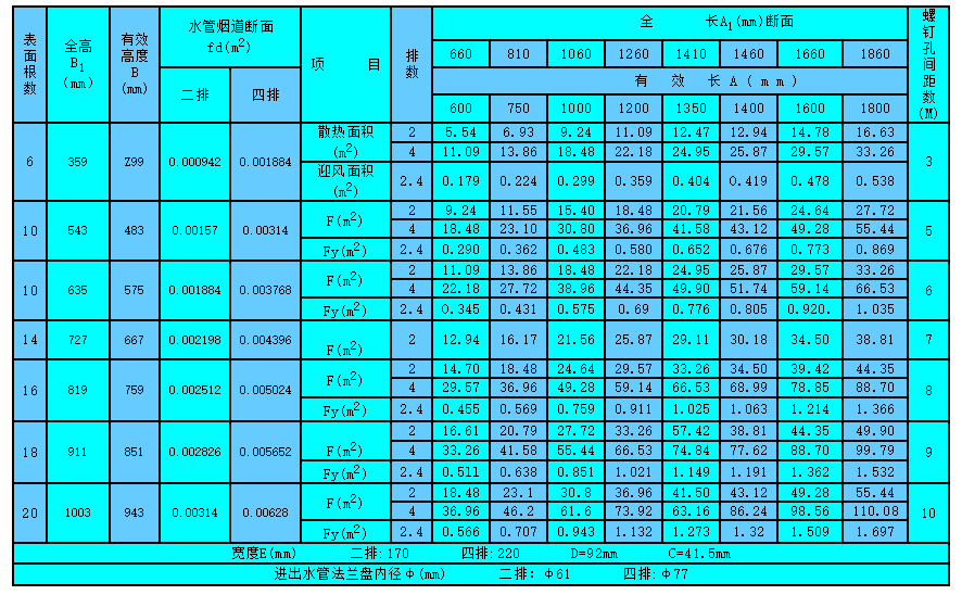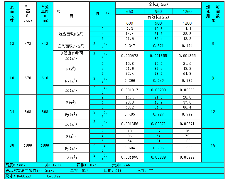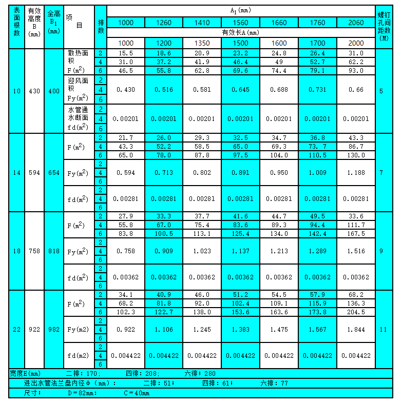 A—表示肋管有效长度(迎风面长度),B表示有效高度(迎风面高度),